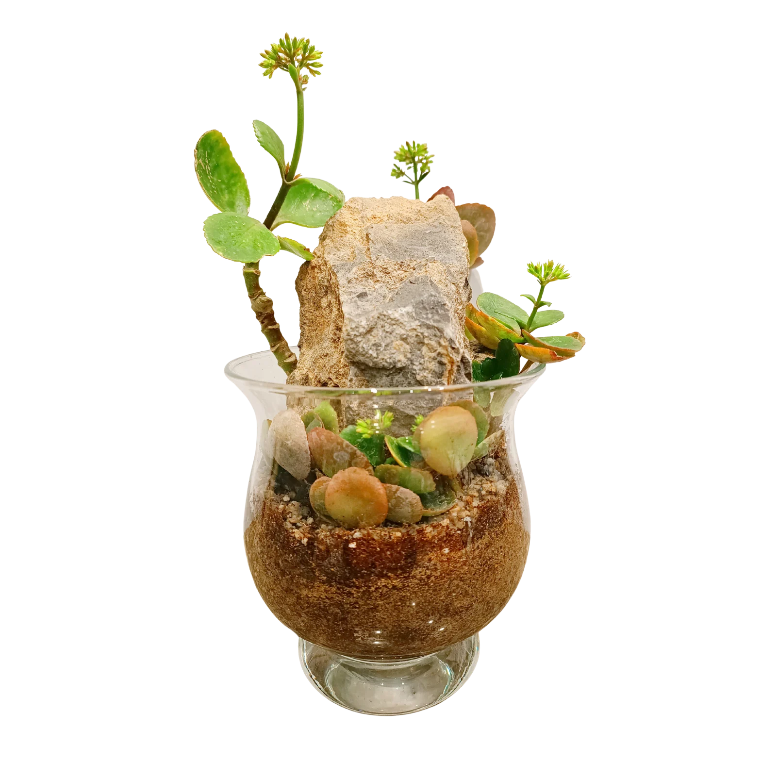 A serene blend of living green Kalanchoe arranged as aminiature piece of natural art
